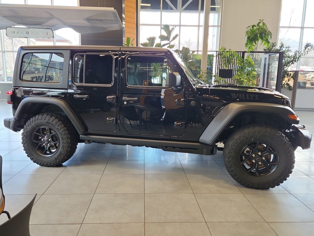 Convenience Group: Emergency/Assistance Call; 2-Door Passive Entry. Front Door Locks; Remote Start System; Cluster 7.0 TFT Color Display; Universal Garage Door Opener; Heated Front Seats; Air Conditioning W/Auto Temp Control; Heated Steering Wheel; Air Filtering; Emergency/Assistance Call; 2-Door Passive Entry. Front Door Locks; Cluster 7.0 TFT Color Display; Universal Garage Door Opener; Heated Front Seats; Air Conditioning W/Auto Temp Control; Heated Steering Wheel; Air Filtering. Safety Group: Auto High Beam Headlamp Control; Blind Spot & Cross Path Detection; LED Taillamps; ParkSense Rear Park Assist System; Injection Molded Black Rear Bumper. Quick Order Package 23W Willys: 7 & 4 Pin Wiring Harness; Conventional Differential Front Axle; 4-Wheel Drive Swing Gate Decal; Black Grille W/Gloss Black Rings; MOPAR All-Weather Floor Mats; Injection Molded Black Rear Bumper; Dana M210 Wide HD Tube Front Axle; Daytime Running Lamps LED Accents; Front LED Fog Lamps; LED Premium Reflector Headlamps; E-Locker Rear Axle; Corning Gorilla Glass; Security Alarm; 4.10 Rear Axle Ratio; 5. 675 lbs GVWR; Class II Receiver Hitch; Mold In Color Bumper W/Gloss Black; Advanced Brake Assist; Willy's Suspension; LT285/70R17C BSW Mud Terrain Tires; Automatic Headlamps; Deep Tint Sunscreen Windows; Off-Road Plus Mode; 17 X 7.5 Painted Black Wheels; Willys Hood Decal; Full Speed Forward Collision Warning Plus; Rock Protection Sill Rails; Power Heated Mirrors; Enhanced Adaptive Cruise Control; Auxiliary Switches; Dana M220 Wide Rear Axle; Molded in Color Rubicon Highline Flare; Premium Wrapped Steering Wheel; Sun Visors W/Illuminated Vanity Mirrors. Quick Order Package 24W Willys: 7 & 4 Pin Wiring Harness; Conventional Differential Front Axle; 4-Wheel Drive Swing Gate Decal; Black Grille W/Gloss Black Rings; MOPAR All-Weather Floor Mats; Injection Molded Black Rear Bumper; Dana M210 Wide HD Tube Front Axle; Daytime Running Lamps LED Accents; Front LED Fog Lamps; LED Premium Reflector Headlamps; E-Locker Rear Axle; Corning Gorilla Glass; Security Alarm; 4.10 Rear Axle Ratio; 5. 675 lbs GVWR; Class II Receiver Hitch; Mold In Color Bumper W/Gloss Black; Advanced Brake Assist; Willy's Suspension; LT285/70R17C BSW Mud Terrain Tires; Automatic Headlamps; Deep Tint Sunscreen Windows; Off-Road Plus Mode; 17 X 7.5 Painted Black Wheels; Willys Hood Decal; Full Speed Forward Collision Warning Plus; Rock Protection Sill Rails; Power Heated Mirrors; Enhanced Adaptive Cruise Control; Auxiliary Switches; Dana M220 Wide Rear Axle; Molded in Color Rubicon Highline Flare; Premium Wrapped Steering Wheel; Sun Visors W/Illuminated Vanity Mirrors. Steel Power Dome Hood Package: Power Dome Dual Vented Hood. Black 3-Piece Hard Top. MOPAR Hardtop Headliner. Black Clearcoat. MOPAR Plastic Door Sill Guards. **Equipment listed is based on original vehicle build and subject to change. Please confirm the accuracy of the included equipment by calling the dealer prior to purchase.**