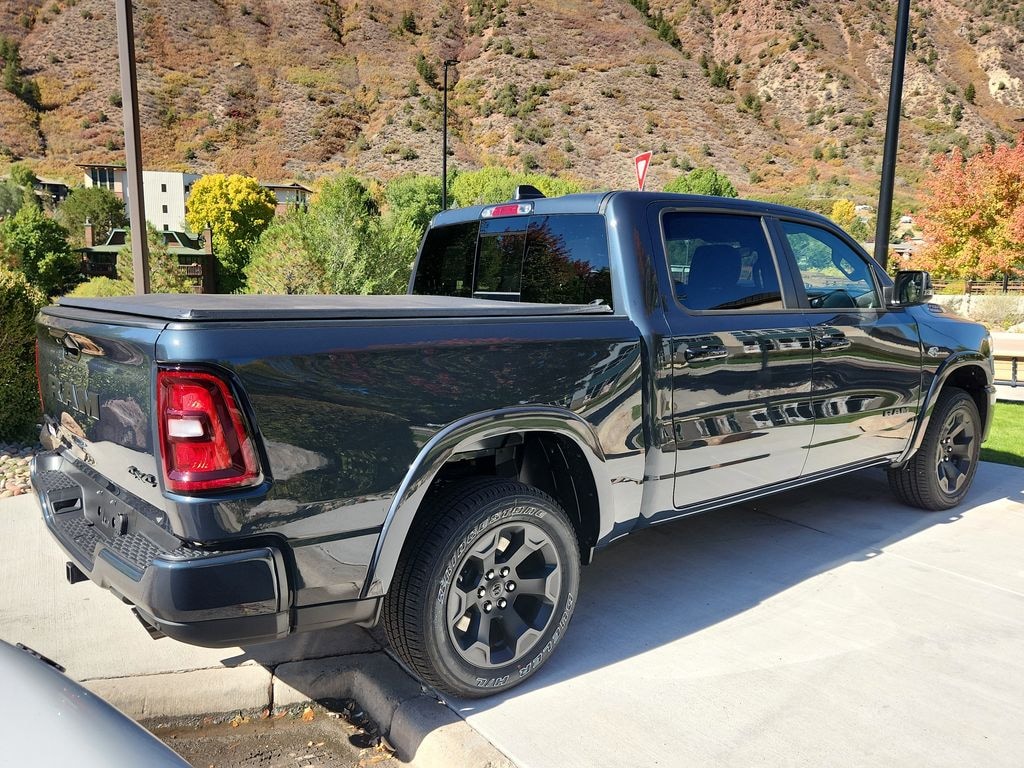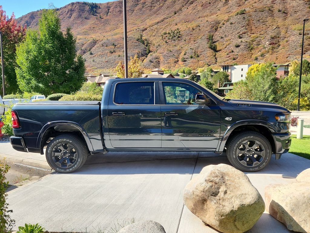 Quick Order Package 27Z Big Horn. Big Horn Level 2 Equipment Group: Google Android Auto; SiriusXM Radio Service; USB Host Flip; Power Adjustable Pedals; Leather Wrapped Steering Wheel; Integrated Voice Command with Bluetooth; 12 Touchscreen Display; Glove Box Lamp; Auto Power-Folding Mirrors; 115V Auxiliary Rear Power Outlet; Media Hub with 2 Charge Only USBs; Heated Front Seats; Security Alarm; Black Premium Power Mirrors; Apple CarPlay; Premium Overhead Console; 9 Amplified Speakers with Subwoofer; Disassociated Touchscreen Display; Secondary Active Grille Shutters; Wireless Charging Pad; Body Color Fender Flares; Remote Tailgate Release; 115V Auxiliary Power Outlet; LED Dome Lamp with On/off Switch; Universal Garage Door Opener; 2nd Row in Floor Storage Bins; Sun Visors with Illuminated Vanity Mirrors; LED Footwell Lighting; Rear Window Defroster; Integrated Center Stack Radio; Rear View Auto Dim Mirror; Rear Power Sliding Window; Connectivity - US/Canada; GPS Navigation; 4G LTE Wi-Fi Hot Spot; GPS Antenna Input; Overhead LED Lamps; 20 X 9 Aluminum Chrome Clad Wheels; Exterior Mirrors with Heating Element; Auto Dim Exterior Driver Mirror; SiriusXM with 360L; Global Telematics Box Module; Connected Travel and Traffic Services; Heated Steering Wheel; Black Exterior Mirrors; Configurable Drive Mode; Off-Road Information Pages; 400W Inverter; HD Radio; Deluxe Cloth Bucket Seats; Uconnect 5 Navigation with 12.0 Display Radio; Exterior Mirrors with Supplemental Signals; Steering Wheel Mounted Audio Controls; Exterior Mirrors Courtesy Lamps; Air Conditioning ATC with Dual Zone Control; Cluster 7.0 TFT Color Display; Convex Wide-Angle Exterior Mirror Insert; Google Android Auto; SiriusXM Radio Service; USB Host Flip; Power Adjustable Pedals; Leather Wrapped Steering Wheel; Integrated Voice Command with Bluetooth; 12 Touchscreen Display; Glove Box Lamp; Auto Power-Folding Mirrors; 115V Auxiliary Rear Power Outlet; Media Hub with 2 Charge Only USBs; Heated Front Seats; Security Alarm; Black Premium Power Mirrors; Apple CarPlay; Premium Overhead Console; 9 Amplified Speakers with Subwoofer; Disassociated Touchscreen Display; Secondary Active Grille Shutters; Wireless Charging Pad; Body Color Fender Flares; Remote Tailgate Release; 115V Auxiliary Power Outlet; LED Dome Lamp with On/off Switch; Universal Garage Door Opener; 2nd Row in Floor Storage Bins; Sun Visors with Illuminated Vanity Mirrors; LED Footwell Lighting; Rear Window Defroster; Integrated Center Stack Radio; Rear View Auto Dim Mirror; Rear Power Sliding Window; Connectivity - US/Canada; GPS Navigation; 4G LTE Wi-Fi Hot Spot; GPS Antenna Input; Overhead LED Lamps; 20 X 9 Aluminum Chrome Clad Wheels; Exterior Mirrors with Heating Element; Auto Dim Exterior Driver Mirror; SiriusXM with 360L; Global Telematics Box Module; Connected Travel and Traffic Services; Heated Steering Wheel; Black Exterior Mirrors; Configurable Drive Mode; 400W Inverter; HD Radio; Deluxe Cloth Bucket Seats; Uconnect 5 Navigation with 12.0 Display Radio; Exterior Mirrors with Supplemental Signals; Steering Wheel Mounted Audio Controls; Exterior Mirrors Courtesy Lamps; Air Conditioning ATC with Dual Zone Control; Cluster 7.0 TFT Color Display; Convex Wide-Angle Exterior Mirror Insert. Night Edition: 275/55R20 OWL All Season Tires; Accent Color Premium Power Mirrors; Exterior Mirrors with Supplemental Signals; Black Headlamp Bezels; Exterior Mirrors Courtesy Lamps; Grille Black Surround Black Mesh; Auto Power-Folding Mirrors; Exterior Mirrors with Heating Element; 20 X 9.0 Aluminum Painted Clad Wheels; Auto Dim Exterior Driver Mirror; Black Exterior Truck Badging; Anti-Spin Differential Rear Axle; Accent Color Door Handles; Accent Color Tailgate Handle; Black Interior Accents; Dual Exhaust with Black Tips; Body Color Front Bumper; Convex Wide-Angle Exterior Mirror Insert; Body Color Rear Bumper with Step Pads; Black Tail Lamp Bezels; RAM Grille Badge - Black; Black Painted Exterior Mirrors Caps; 275/55R20 OWL All Season Tires; Accent Color Premium Power Mirrors; Exterior Mirrors with Supplemental Signals; Black Headlamp Bezels; Exterior Mirrors Courtesy Lamps; Grille Black Surround Black Mesh; Auto Power-Folding Mirrors; Exterior Mirrors with Heating Element; 20 X 9.0 Aluminum Painted Clad Wheels; Auto Dim Exterior Driver Mirror; Black Exterior Truck Badging; Anti-Spin Differential Rear Axle; Accent Color Door Handles; Accent Color Tailgate Handle; Black Interior Accents; Dual Exhaust with Black Tips; Body Color Front Bumper; Convex Wide-Angle Exterior Mirror Insert; Body Color Rear Bumper with Step Pads; Black Tail Lamp Bezels; RAM Grille Badge - Black; Black Painted Exterior Mirrors Caps. 9 Amplified Speakers with Subwoofer. Tri-Fold Tonneau Cover. Anti-Spin Differential Rear Axle. 33 Gallon Fuel Tank. Trailer Brake Control. Forged Blue Metallic. MyFlexCare Service Plan. MOPAR Front and Rear Rubber Floor Mats. 3.92 Rear Axle Ratio. **Equipment listed is based on original vehicle build and subject to change. Please confirm the accuracy of the included equipment by calling the dealer prior to purchase.**