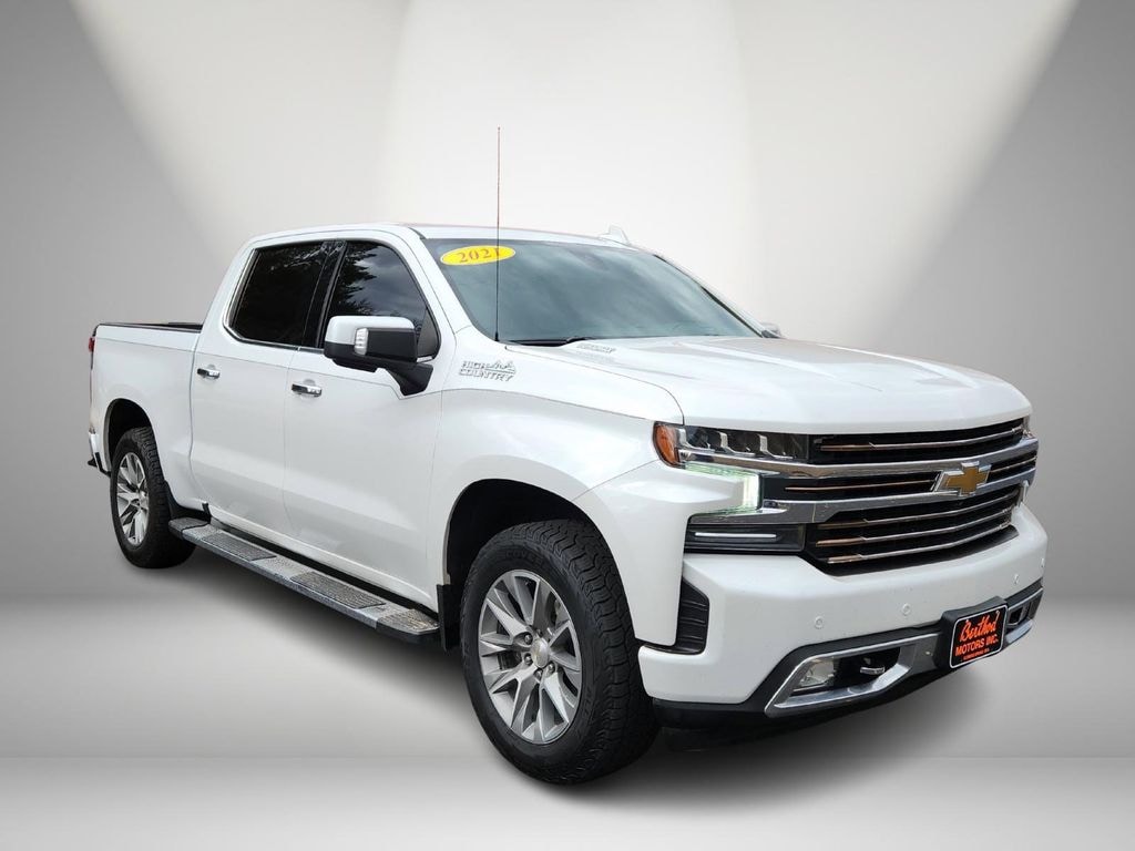 Welcome to peak truck with our One Owner 2021 Chevrolet Silverado 1500 High Country Crew Cab 4X4 that shows off Diesel strength and a bold Iridescent Pearl Tricoat design! Featuring a TurboCharged 3.0 Liter DuraMax Diesel 6 Cylinder offering 277hp and 460lb-ft of torque paired with a 10 Speed Automatic transmission. This Four Wheel Drive truck takes you to the top of the mountain without breaking a sweat and sees nearly 26mpg on the highway. Its rugged look makes a big impression with LED lighting, high-intensity headlamps, running boards, alloy wheels, chrome recovery hooks, dual exhaust outlets, a spray-on Bedliner, and a power tailgate.