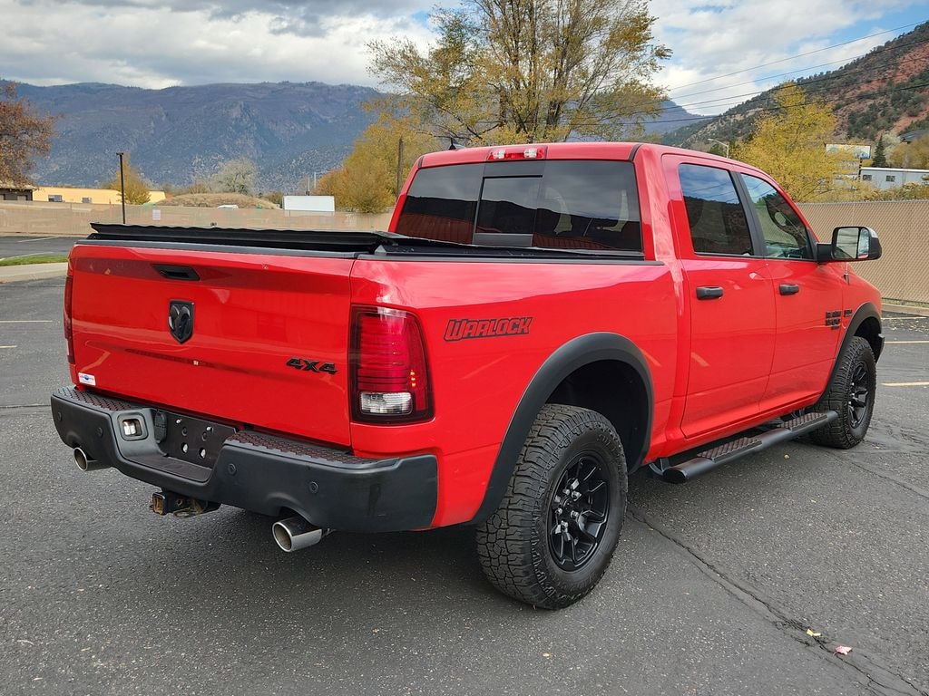 Confident and capable, our Accident Free 2021 RAM 1500 Classic Warlock Crew Cab 4X4 with the Electronics Pack adds bold black details to its rugged Flame Red design! Powered by a 5.7 Liter HEMI V8 serving up 395hp tethered to an 8 Speed Automatic transmission for impressive strength you can count on. As a result, you'll be able to tow and haul with ease in this Four Wheel Drive truck that also scores nearly 21mpg on the highway. Our RAM's dark-themed accents will draw stares thanks to an exclusive grille, powder-coated bumpers, sport-style taillamps, and 20-inch black alloy wheels. Step bars, a tow hitch receiver, a spray-on bedliner, and a tonneau cover have also been installed.